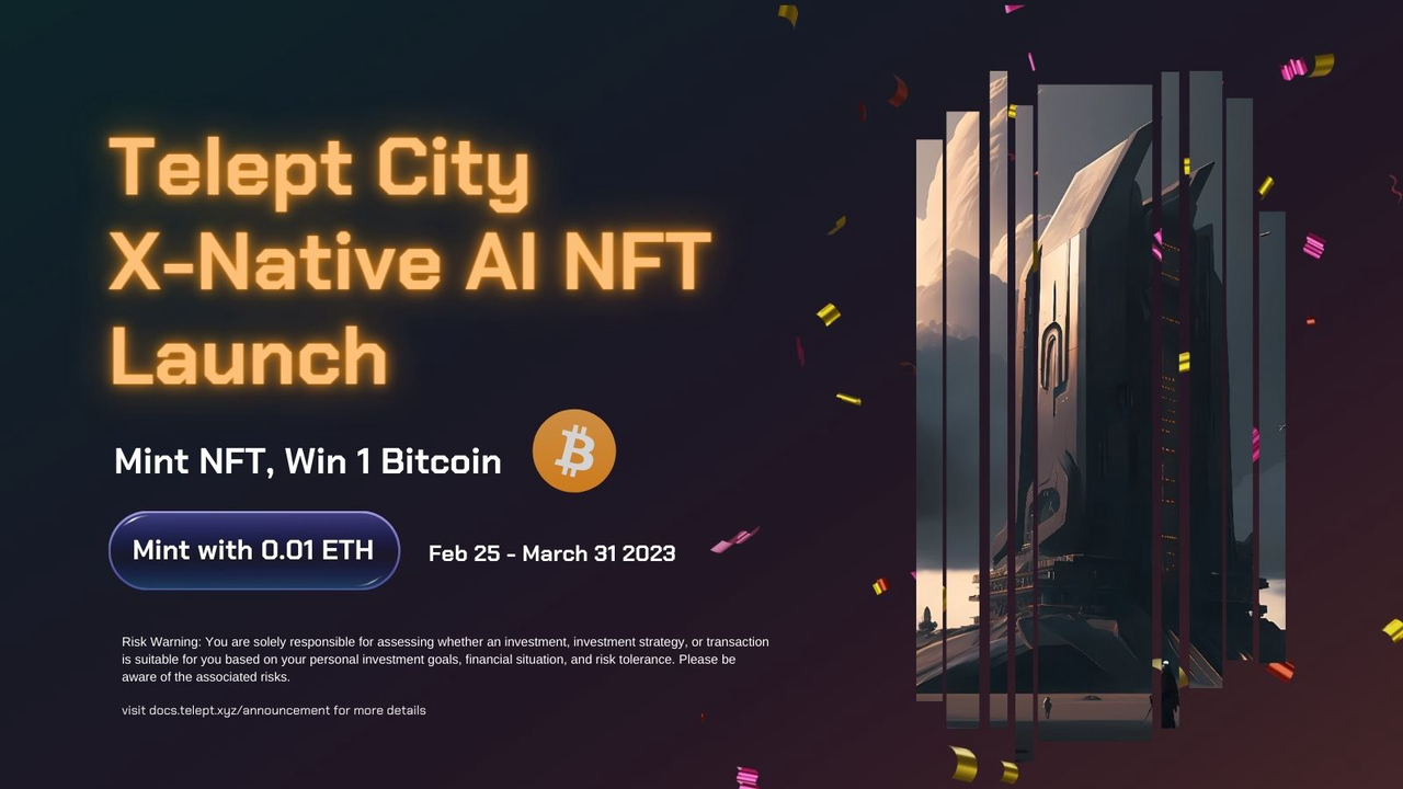 The Mint AI NFT Launch Campaign **#BitcoinXNative.** Get ready to dive into the world where AI meets NFT and join the fun with our giveaway. With a chance to win up to 1 Bitcoin or Altcoin. Simply visit the[ Telept City: X-Native Website ](https://telept.xyz/x-native)to generate your NFT and share it on Twitter. let the games begin.